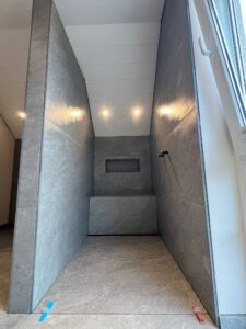 Die Fliesenverlegung selbst ist ein Handwerk, das viel Präzision, Erfahrung und ein geschultes Auge für Details erfordert. Durch meine jahrelange Erfahrung garantiere ich exakte Fugenbilder, saubere Abschlüsse und ein Ergebnis, das auch nach vielen Jahren noch Freude bereitet. Hochwertige Materialien und eine sorgfältige Verarbeitung sind dabei selbstverständlich.